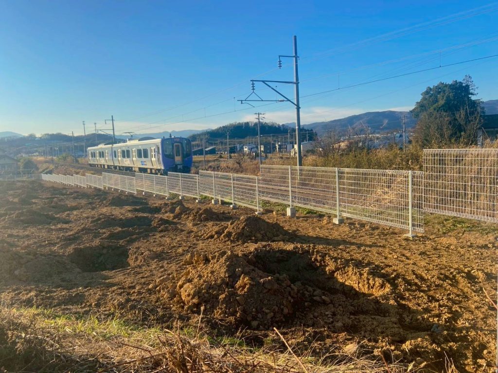フェンス設置風景。【阿武隈急行に隣接するフェンス】